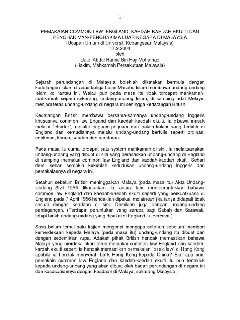 58a Pemakainan Common Law Of England Di Malaysia 1 Pdf